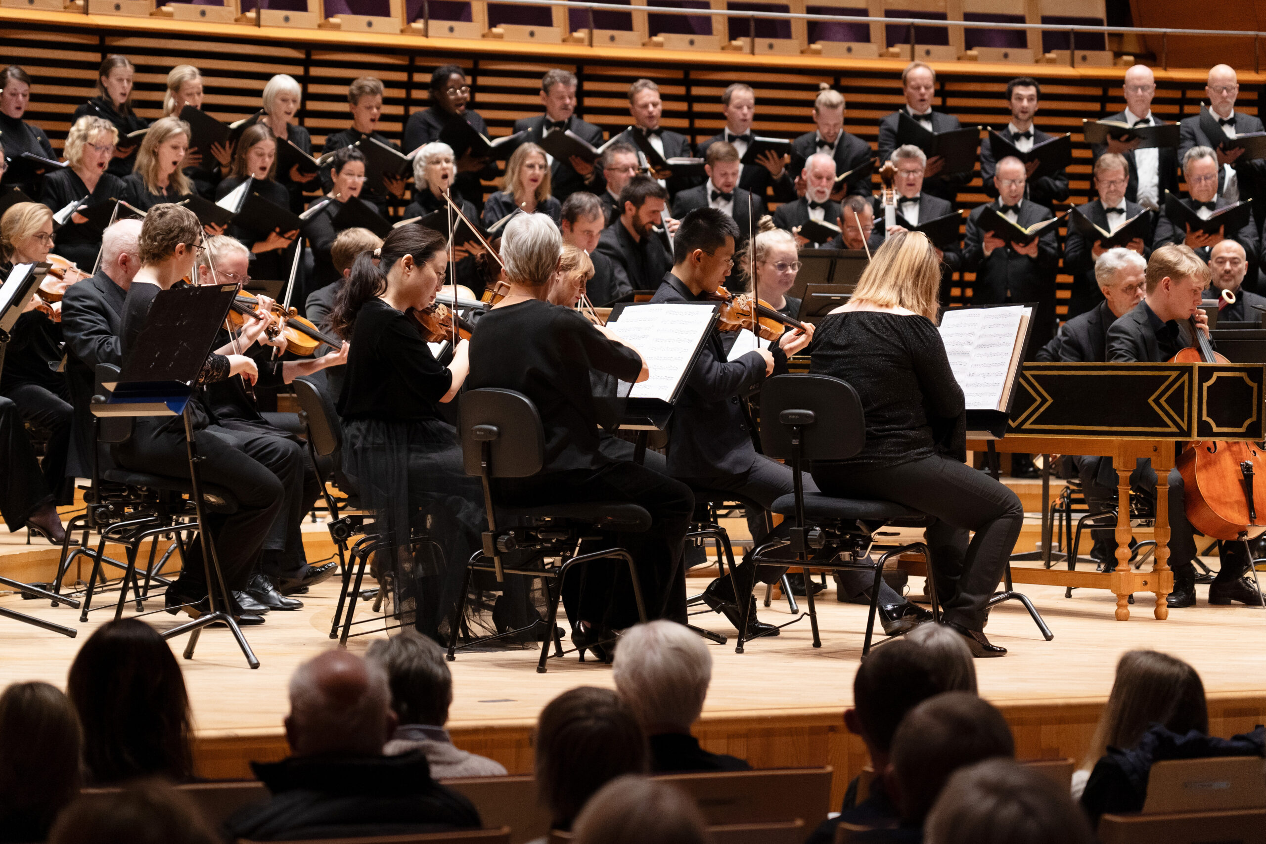 Første del heter Jauchzet, frohlocket; gi lyd, dere pauker, gi gjenlyd, trompeter, og åpner med festmusikk og et jublende åpningskor i den kongelige tonearten D-dur. Evangelisten forteller at Maria og Josef må følge budskapet fra keiser Augustus om å forlate hjemlandet Galilea, for å skrive seg inn i folketellingen i Josefs fødeby Bethlehem. Altarien «Bereite dich Zion» gir en første anelse om det store som skal skje, og menigheten svarer med koralen «Wie soll ich dich empfangen». I bass-arien «Grosser Herr» synger solisten om barnet i krybben, akkompagnert av solo-trompet som et kongelig symbol, og den første kantaten slutter med en bønn om å gjøre ens eget hjerte til en krybbe.